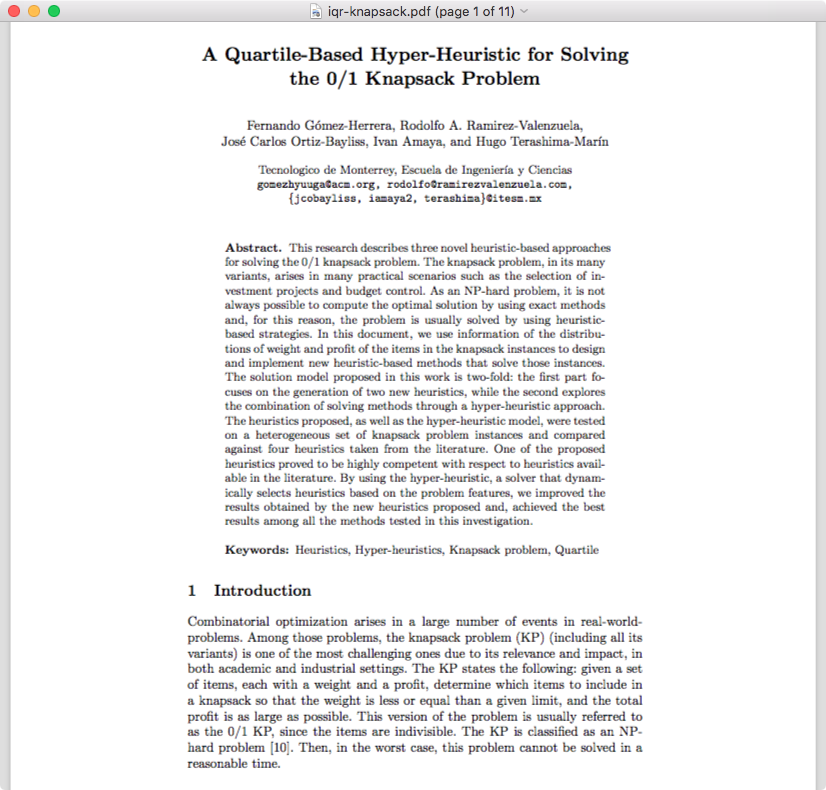 Co-authors: Rodolfo A. Ramírez-Valenzuela, José Carlos Ortiz-Bayliss, Ivan Amaya, and Hugo Terashima-Marín.